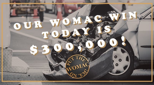 We recently represented a client who sustained multiple injuries in an automobile accident. Our client suffered a bulging disc in his back and a bulging disc in his neck. He underwent three epidural steroid injections in the neck without lasting relief. Ultimately, our client underwent a cervical laminectomy and foraminotomy. We put the Womac on Em and recovered $300,000.